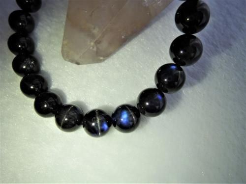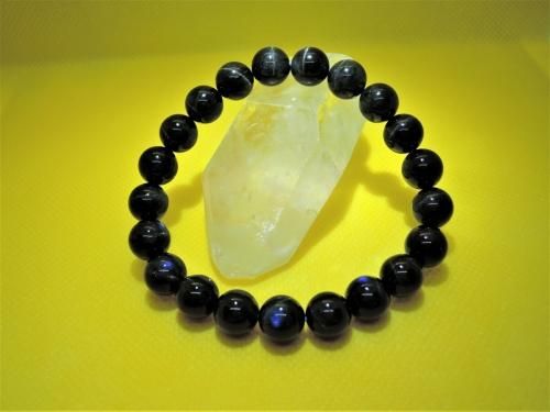 【レア】 ブラックラブラドライト キャツアイ/ black Labradorite cat'seye 10mmブレスレット 神秘の石