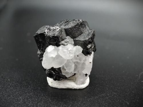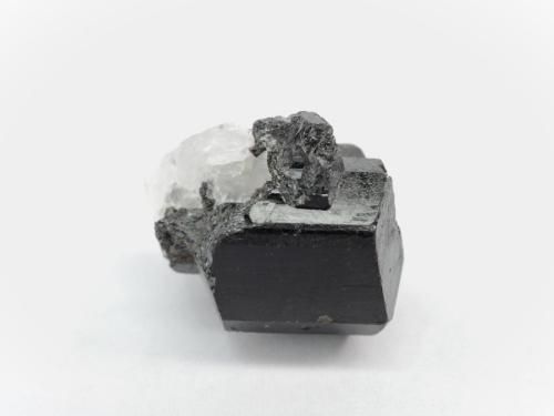 漆黒のブラックトルマリンと水晶が共生している結晶原石です。