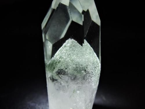 水晶の透明度が高く、中に美しいグリーンファントムが見られるポイントです。