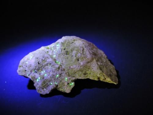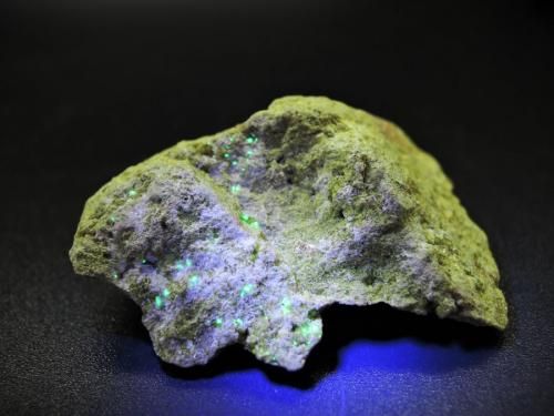 UVライトを当てると、部分的に鮮やかなグリーンに蛍光します。