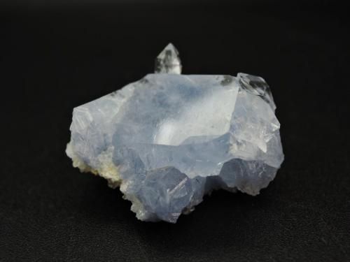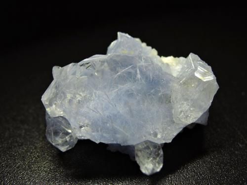 透明感のある水晶の中に、ライトブルーのデュモルチェライト針状結晶がぎっしりと内包されており