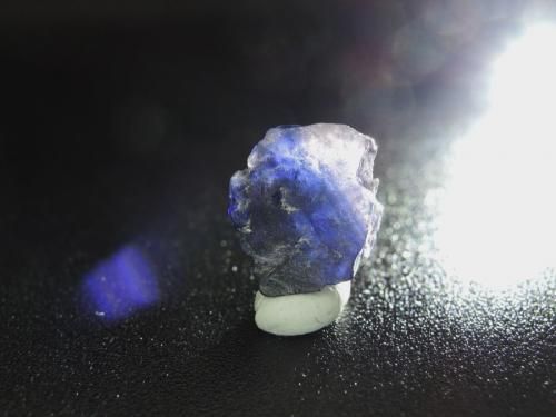 通常のライトで照らすと、石の内部が鮮やかなサファイアブルーに透けて見え、神秘的な輝きが浮かび上がります。
